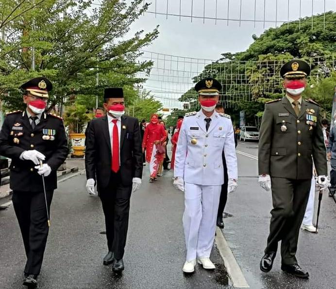 ROHIL (MR) - Pelaksanaan upacara Hari Ulang Tahun (HUT) Republik Indonesia (RI) ke 76 di Kabupaten Rokan Hilir (Rohil) berlangsung khidmat dan dilaksanakan dengan penerapan protokol kesehatan yang ketat, Selasa (17/8/2021).