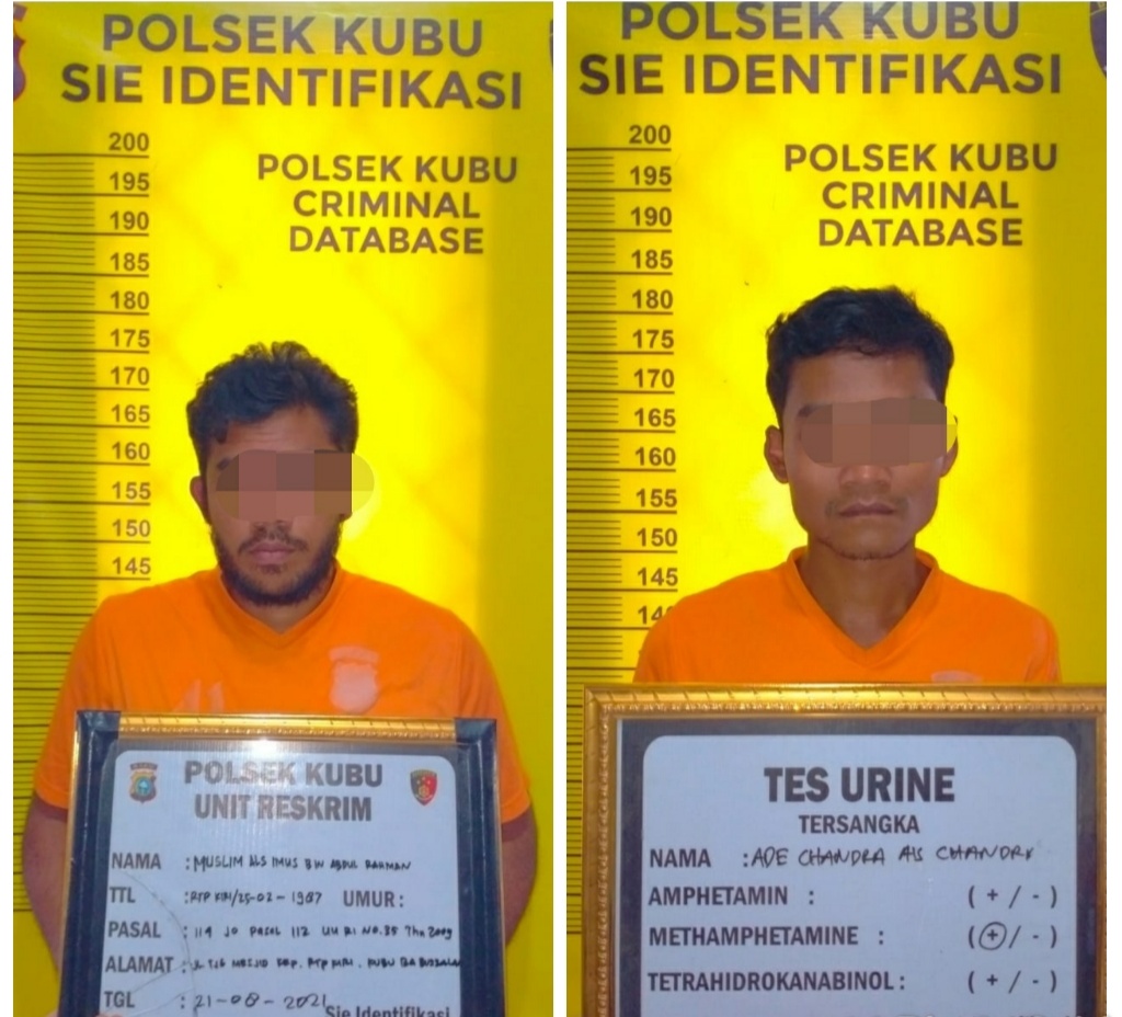 ROHIL (MR) - Kepolisian Sektor Kubu, Polres Rokan Hilir berhasil mengamankan 2 orang terduga pelaku narkoba jenis sabu sabu pada Jumat (20/08/2021) sekira pukul 22.00 WIB kemarin.
