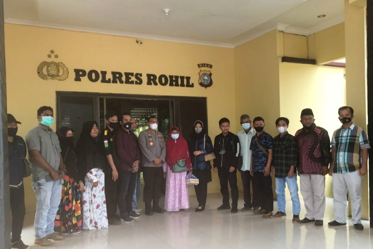 Kapolres Rokan Hilir AKBP Nurhadi Ismanto didampingi Kasat Intel Polres Rokan Hilir AKP Zul Hendra SH, KBO Intel Polres Rokan Hilir IPDA P. Gultom, Ketua Aliansi Masyarakat Sipil Kabupaten Rokan Hilir Khofifah Dinda Sari, Perwakilan Mahasiswa dan beberapa masyarakat lainnya.