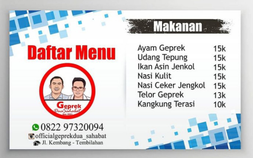 TEMBILAHAN (MR) - Namanya Ayam Geprek Dua Sahabat. Alamatnya di Jalan Kembang, Tembilahan, Kabupaten Indragiri Hilir, Provinsi Riau.