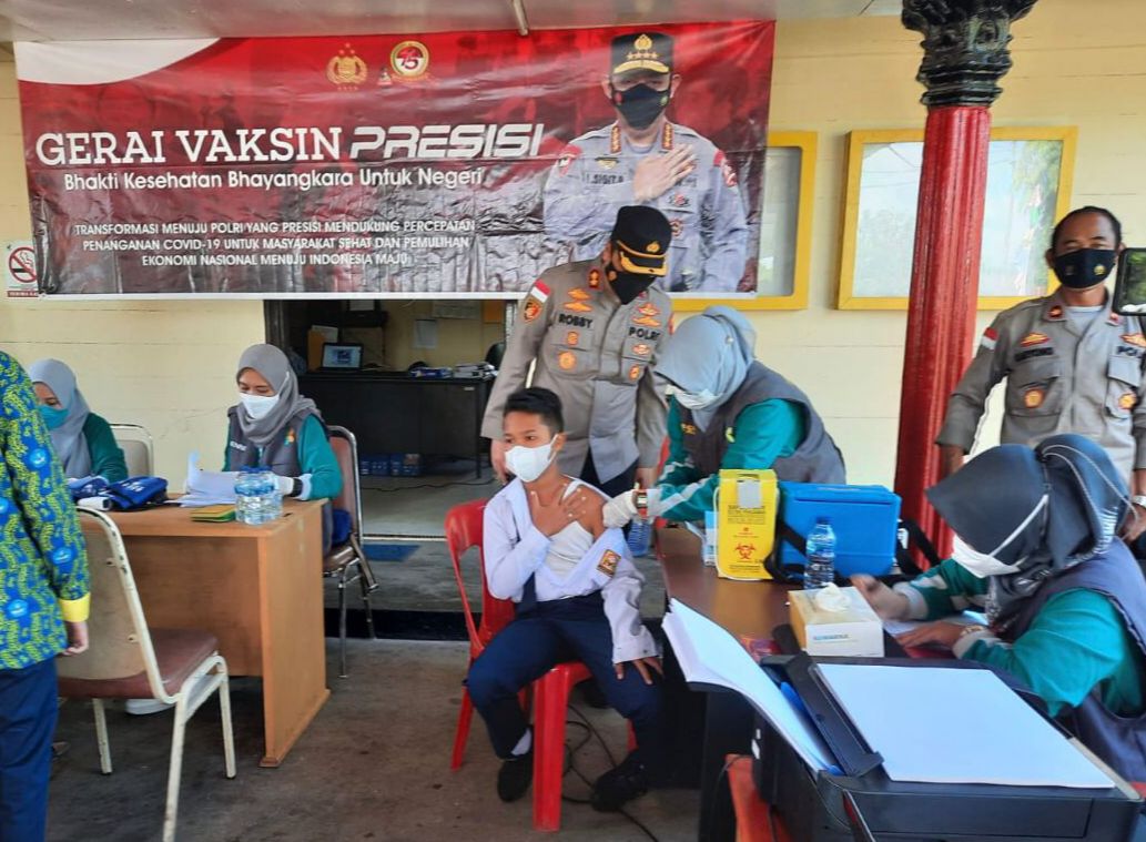 “Vaksinasi ini untuk berbagai kalangan masyarakat, mulai dari anak pelajar atau yang berusia 18, pegawai negeri, pedagang, tokoh masyarakat dan masyarakat lainnya” ucap AKBP Arief.