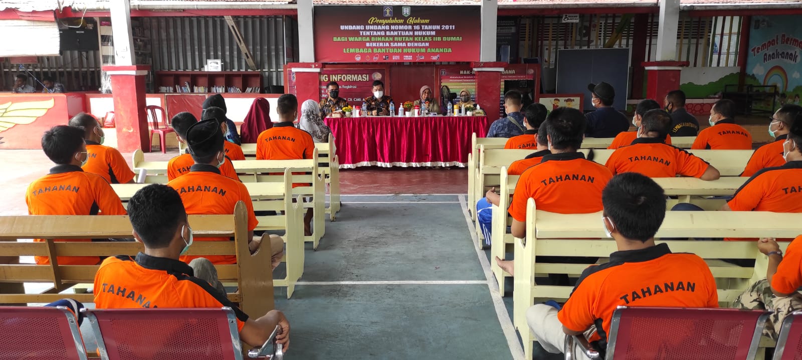 DUMAI (MR) - Kembali Rumah Tahanan Negara (Rutan) Kelas IIB Dumai melakukan Penyuluhan Hukum UU Nomor 16 Tahun 2011 Tentang Bantuan Hukum bagi Warga Binaan Pemasyarakatan (WBP) bekerja sama dengan Lembaga Bantuan Hukum (LBH) Ananda bertempat di lapangan serbaguna Rutan Kelas IIB Dumai.