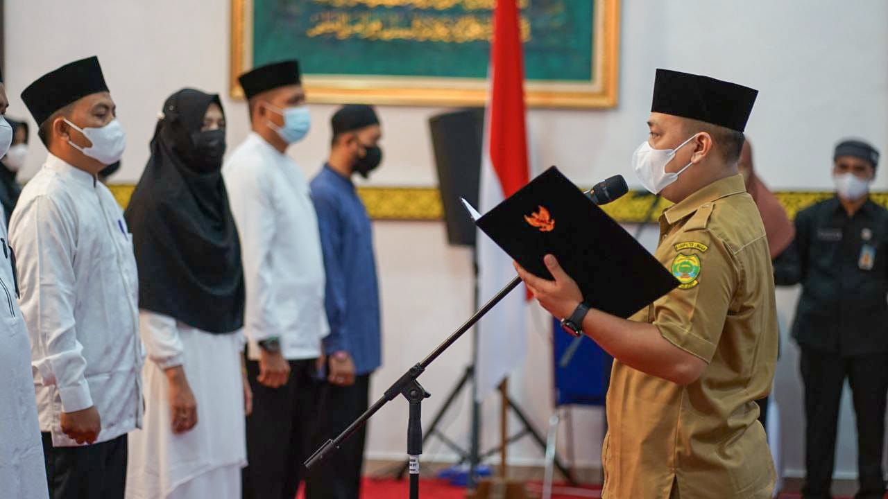 LINGGA (MR) -- Bupati Lingga, Muhammad Nizar mengukuhkan Persatuan Mubaligh Kabupaten Lingga (PMKL) periode 2021-2026 di Gedung Daerah, Daik, Senin (13/09/2021).