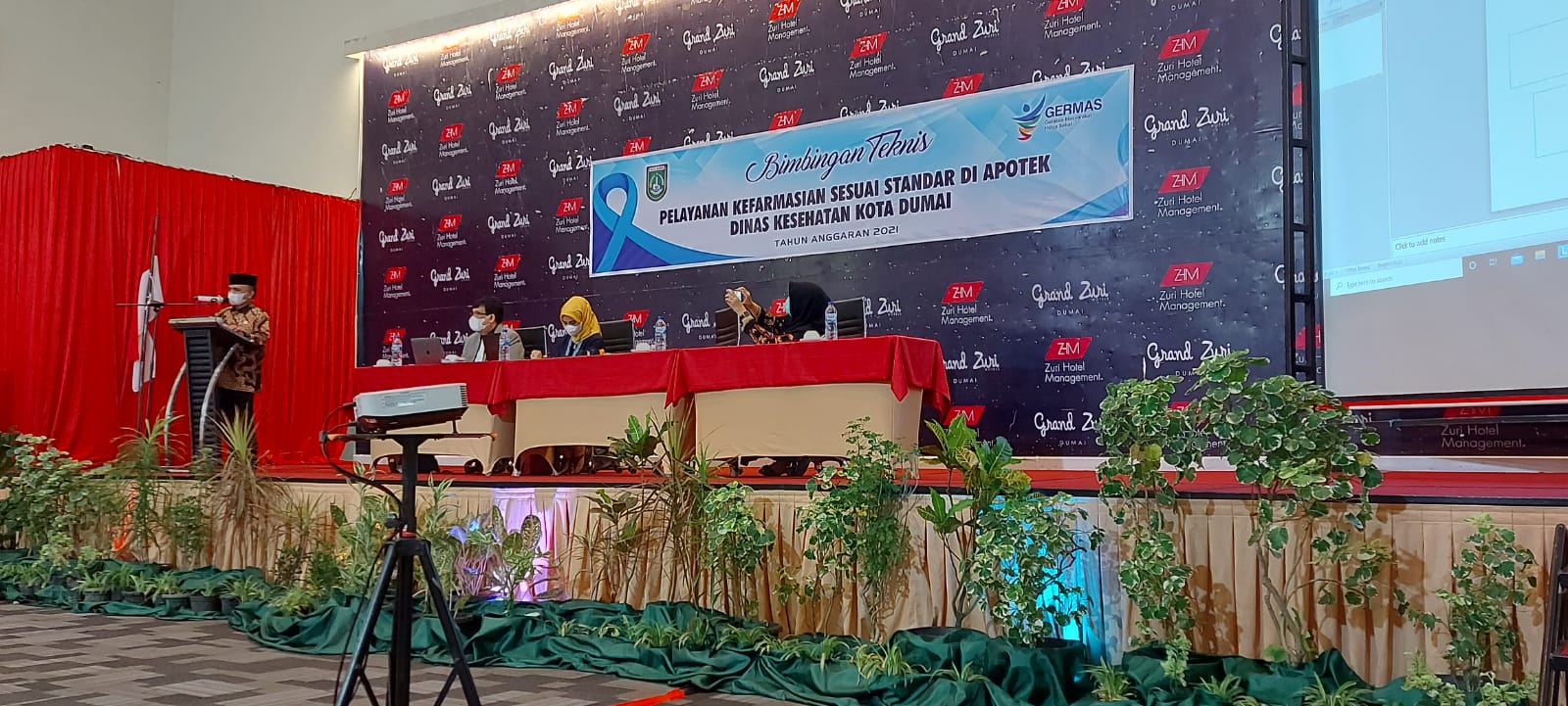 Demikian disampaikan Plt Kepala Dinas Kesehatan (Kadinkes) Kota Dumai dr Syaiful, M.K.M dalam sambutannya dihadapan ratusan peserta Bimbingan Teknis (Bimtek) Pelayanan Kefarmasian sesuai Standar Apotek TA 2021 Dinas Kesehatan di Ballroom Hotel Grand Zuri Dumai Jalan Sudirman.