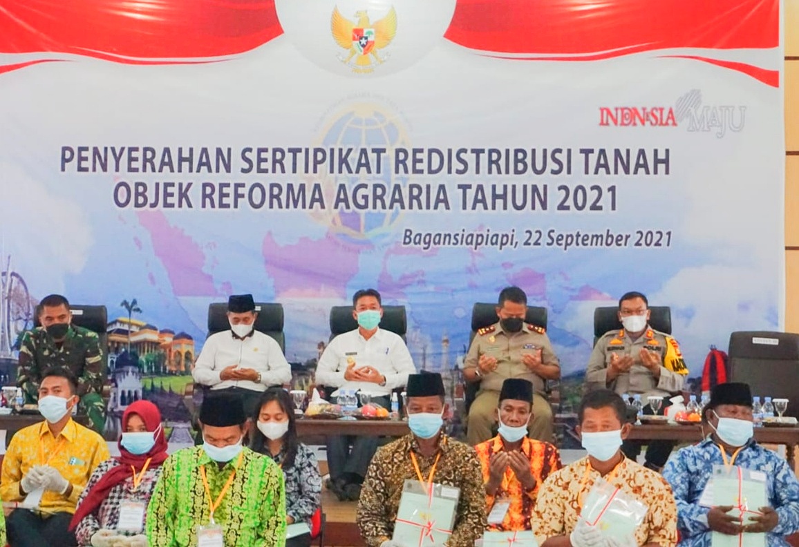 Kepala BPN Rohil Rocky Soenoko dalam sambutannya mengatakan, peserta penerima sertifikat ini merupakan amanat UU Agraria dan Presiden (Perpres) Nomor 86 Tahun 2018 tentang Reforma Agraria agar masyarakat memiliki kepastian hukum tentang hak tanah nya.