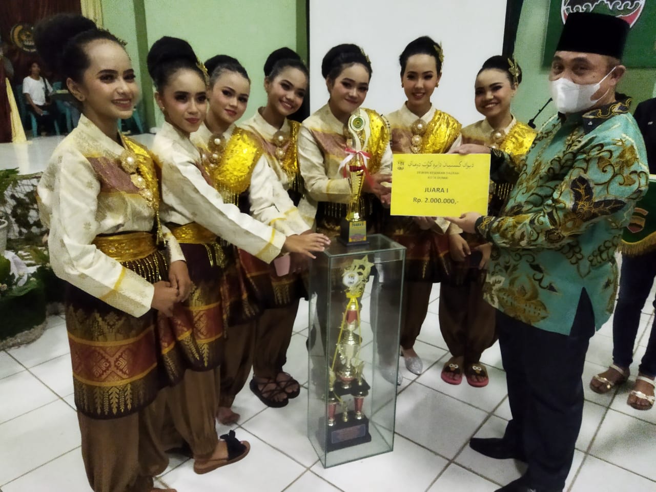 DUMAI (MR) - Festival Tari Zapin Tradisi tingkat pelajar SMP sederajat se-Kota Dumai Tahun 2021 yang diadakan oleh Dewan Kesenian Daerah (DKD) Kota Dumai di Aula Kodim 0320/Dumai memasuki tahap pengumuman juara dan pembagian hadiah.