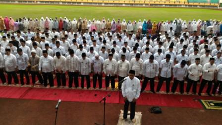 Bertempat di Riau Main Stadium, Jalan Naga Sakti, Kota Pekanbaru, Rabu (11/1/2017) sore, salat fardhu tersebut dipimpin Sekdaprov Riau, Ahmad Hijazi selaku imam.