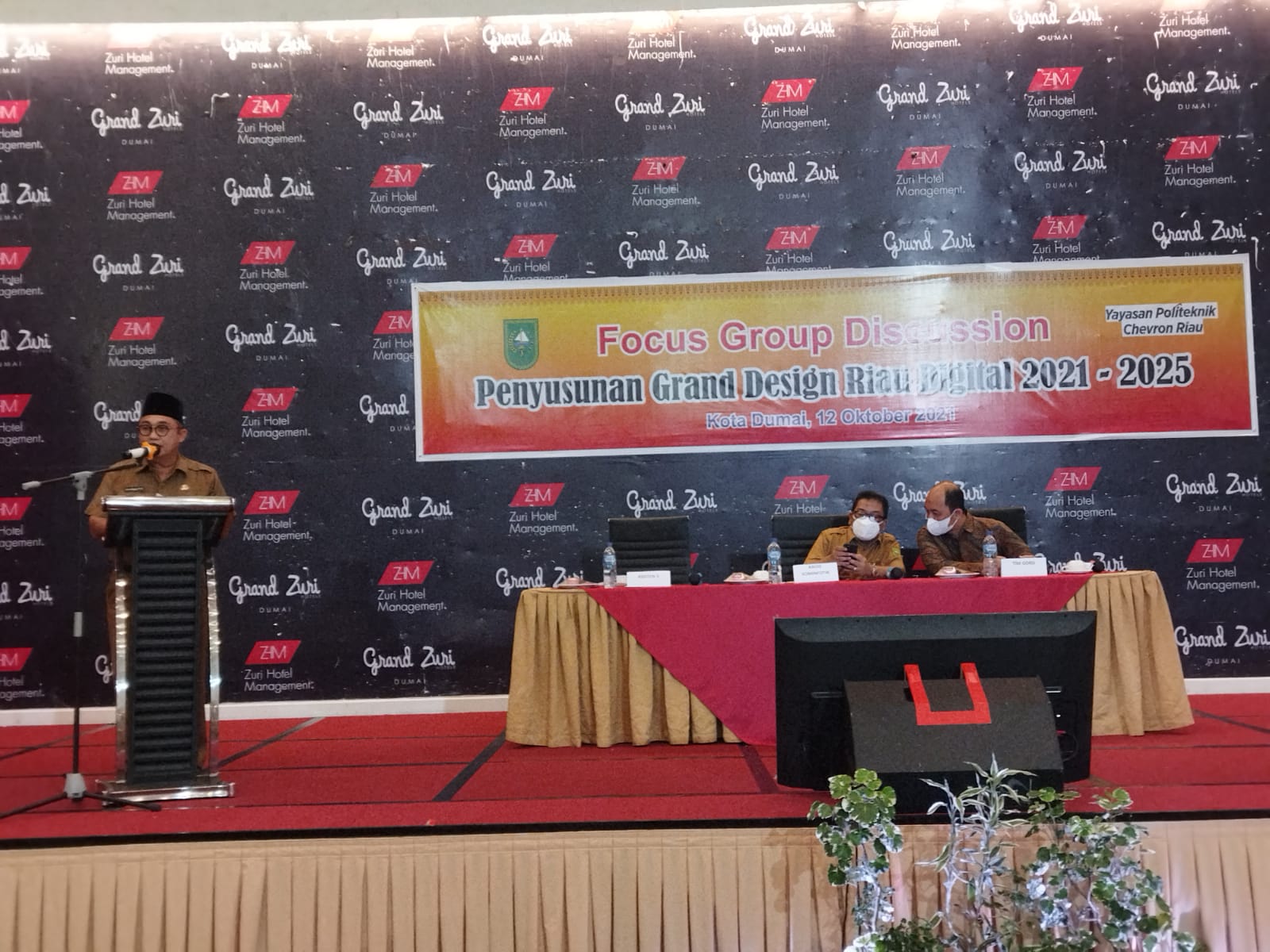 DUMAI (MR) - Pemerintah Provinsi (Pemprov) Riau melalui Dinas Komunikasi, Informasi dan Teknologi Provinsi Riau menggelar acara Focus Group Discussion. Penyusunan Grand Design Riau Digitalisasi 2021-2025 bersama Pemerintah Kota (Pemko) Dumai di Ballroom Grand Zuri Hotel Dumai.