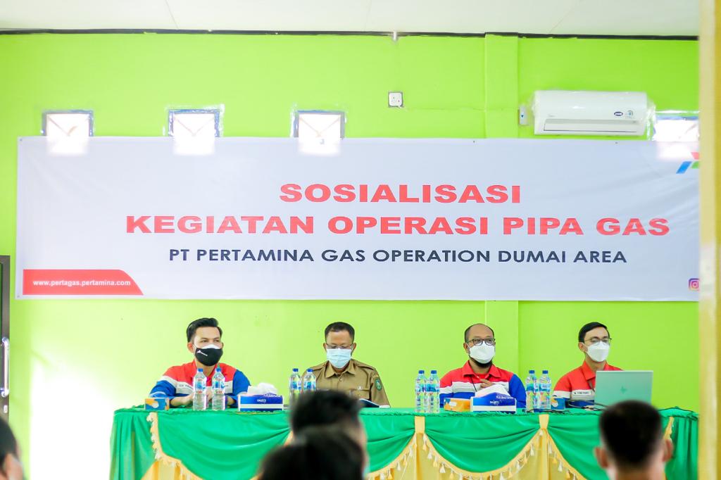 RIAU (MR) - Meningkatkan aspek keamanan dan keselamatan operasi transmisi gas, Sub Holding Gas Pertamina, melalui afiliasinya yakni PT Pertamina Gas Area Operation Dumai Area (Pertagas ODA) melaksanakan sosialisasi di daerah milik jalan (DMJ) atau Right of Way (ROW) jalur pipa gas kepada warga Desa Harapan Baru Kecamatan Mandau Kabupaten Siak (18/10). Bertempat di Aula desa, sosialisasi dihadiri oleh Kepala Desa, perangkat desa serta perwakilan masyarakat Desa Harapan Baru.