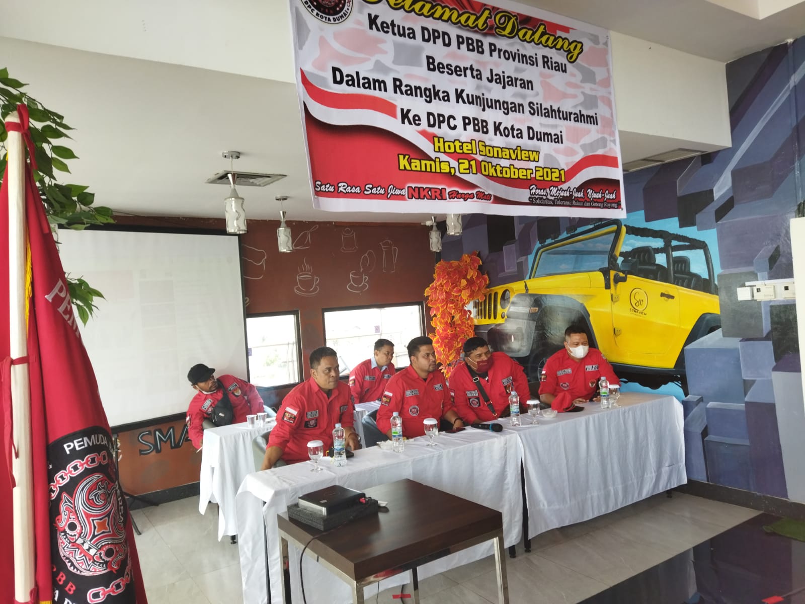 DUMAI (MR) - Agenda kunjungan silahturahmi Pengurus Dewan Pimpinan Daerah Pemuda Batak Bersatu (DPD PBB) Provinsi Riau ke Dewan Pimpinan Cabang (DPC) PBB Kota Dumai bertempat di Hotel Sonaview Jalan Patimura Kota Dumai.