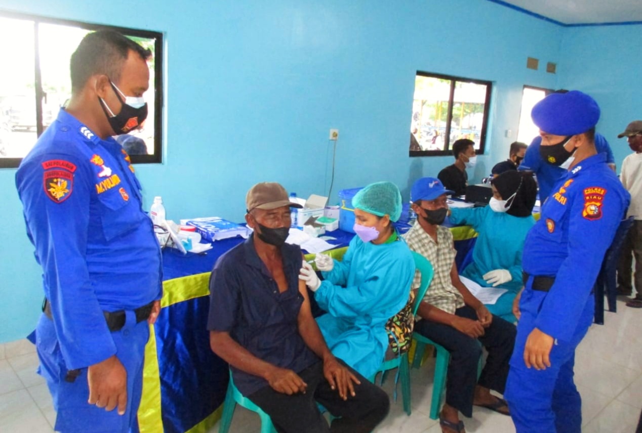 ROHIL (MR) - Kepolisian Sektor Bangko Polres Rokan Hilir laksanakan Vaksinasi COVID-19 bagi masyarakat lanjut usia (lansia) di wilayah pesisir. Kegiatan itu berlangsung di halaman Markas Komando (Mako) Satuan Polisi Perairan dan Udara (Satpolairud) di Bagansiapiapi, Minggu (14/11/2021).