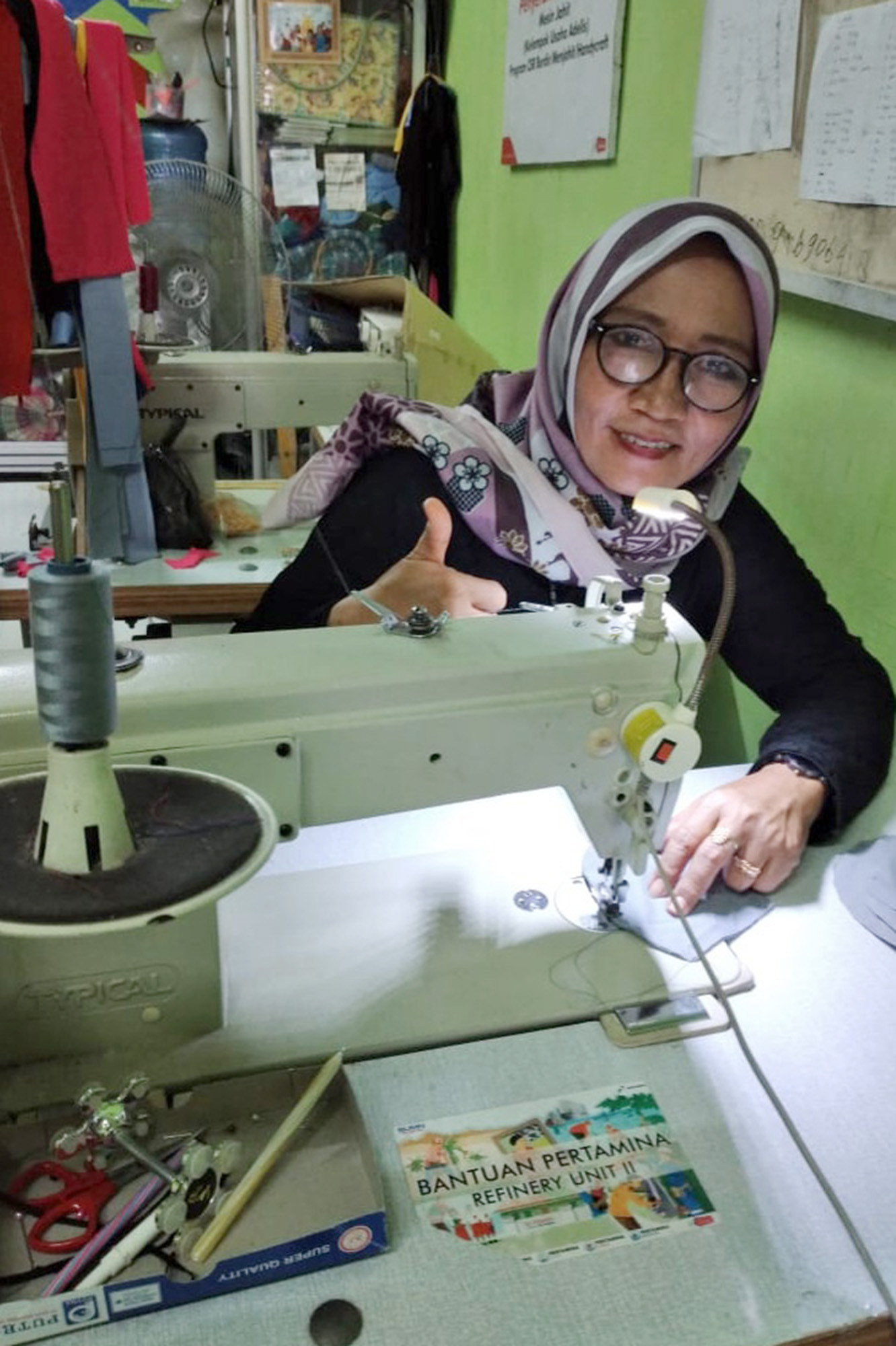 “Sepulangnya dari Bandung, kita kembali mendapatkan bantuan satu unit mesin sablon di bulan Januari dan satu unit mesin jahit di bulan Februari 2019 dari Pertamina,” beber Ani.