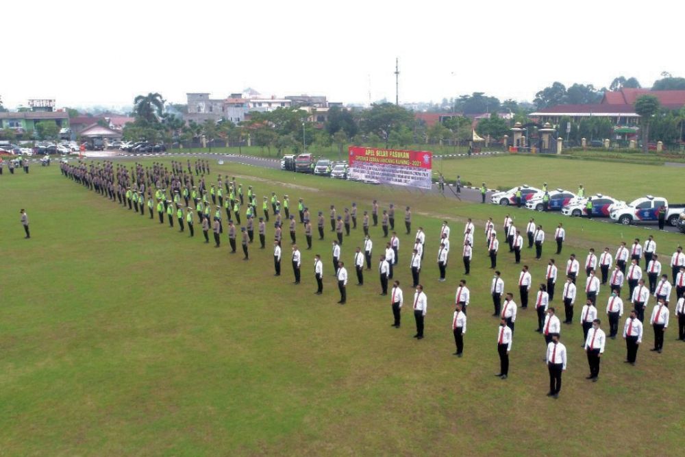 PEKANBARU (MR) - Kapolda Riau, Irjen Agung Setia memimpin apel gelar pasukan Operasi Zebra Lancang Kuning 2021. Dalam operasi ada 840 personel yang terlibat untuk menekan penyebaran COVID-19 jelang libur natal dan tahun baru.