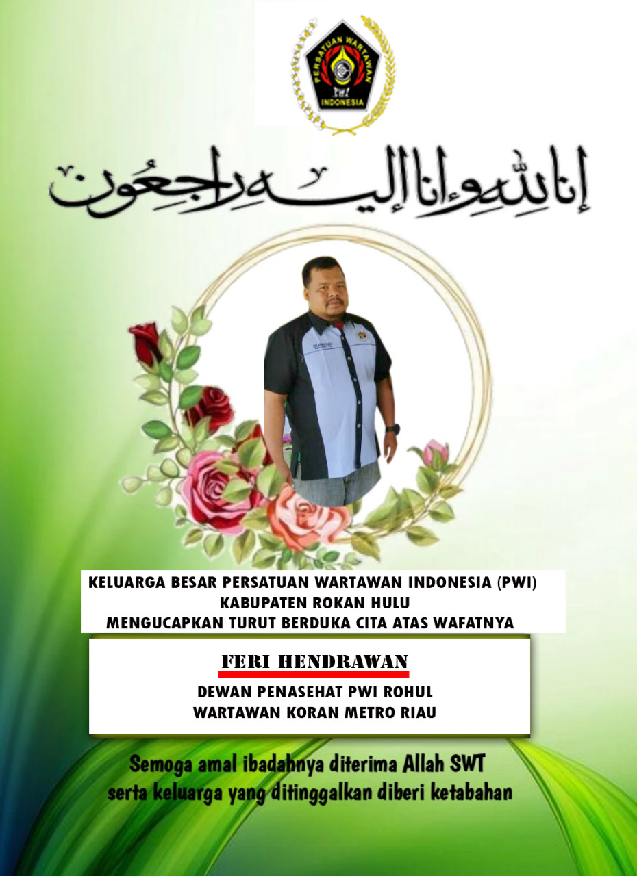 PASIRPENGARAIAN (MR) - Keluarga Besar Persatuan Wartawan Indonesia (PWI) Kabupaten Rokan Hulu (Rohul) berduka cita atas berpulang ke Rahmatullah salah seorang Dewan Penasehat (Wanhat) PWI Rohul, Feri Hendrawan.