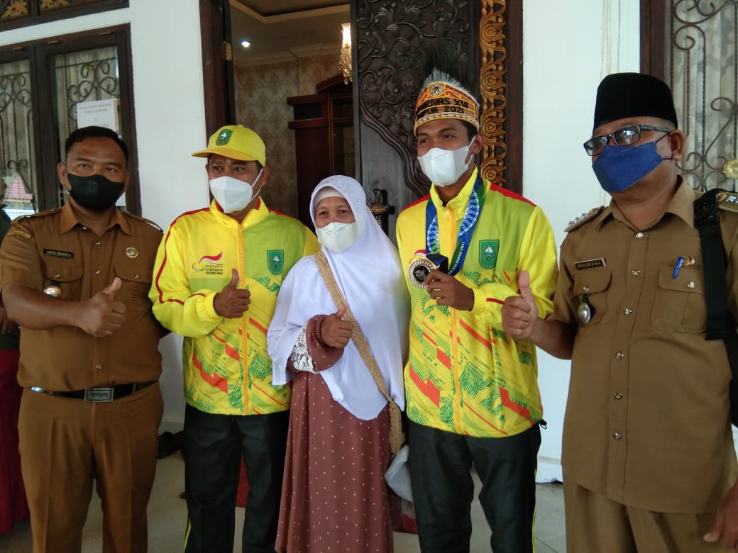 Kedatangan Mu'arip turut didampingi Ketua Nasional Paralimpic Commite Indonesia (NPCI) Kabupaten Rokan Hulu, Pius, Camat Kunto Darussalam, M Ruslan, Kepala Desa Koto Raya, Agus Riyanto serta ibunda Mu'arip, Suarti.