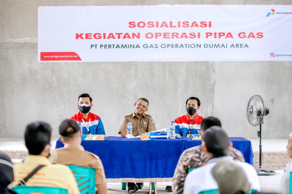 MONITORRIAU.COM - Pertamina Subholding Gas melalui afiliasinya yakni PT Pertamina Gas Operation Dumai Area (ODA) menggelar sosialisasi Right Of Way (ROW) jalur pipa Duri-Dumai di Desa Bathin Bertuah Kecamatan Mandau Kabupaten Bengkalis, Selasa (23/11).