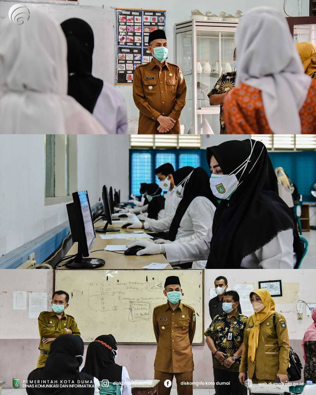 DUMAI (MR) - Mengawali Pagi, Walikota Dumai, H. Paisal, SKM, MARS meninjau pelaksanaan seleksi kompetensi Pegawai Pemerintah dengan Perjanjian Kerja (PPPK) untuk jabatan fungsional guru Tahun Anggaran (TA) 2021, berlokasi di SMK N 1, Jl. Cut Nyak Dien, Selasa (14/9/2021).