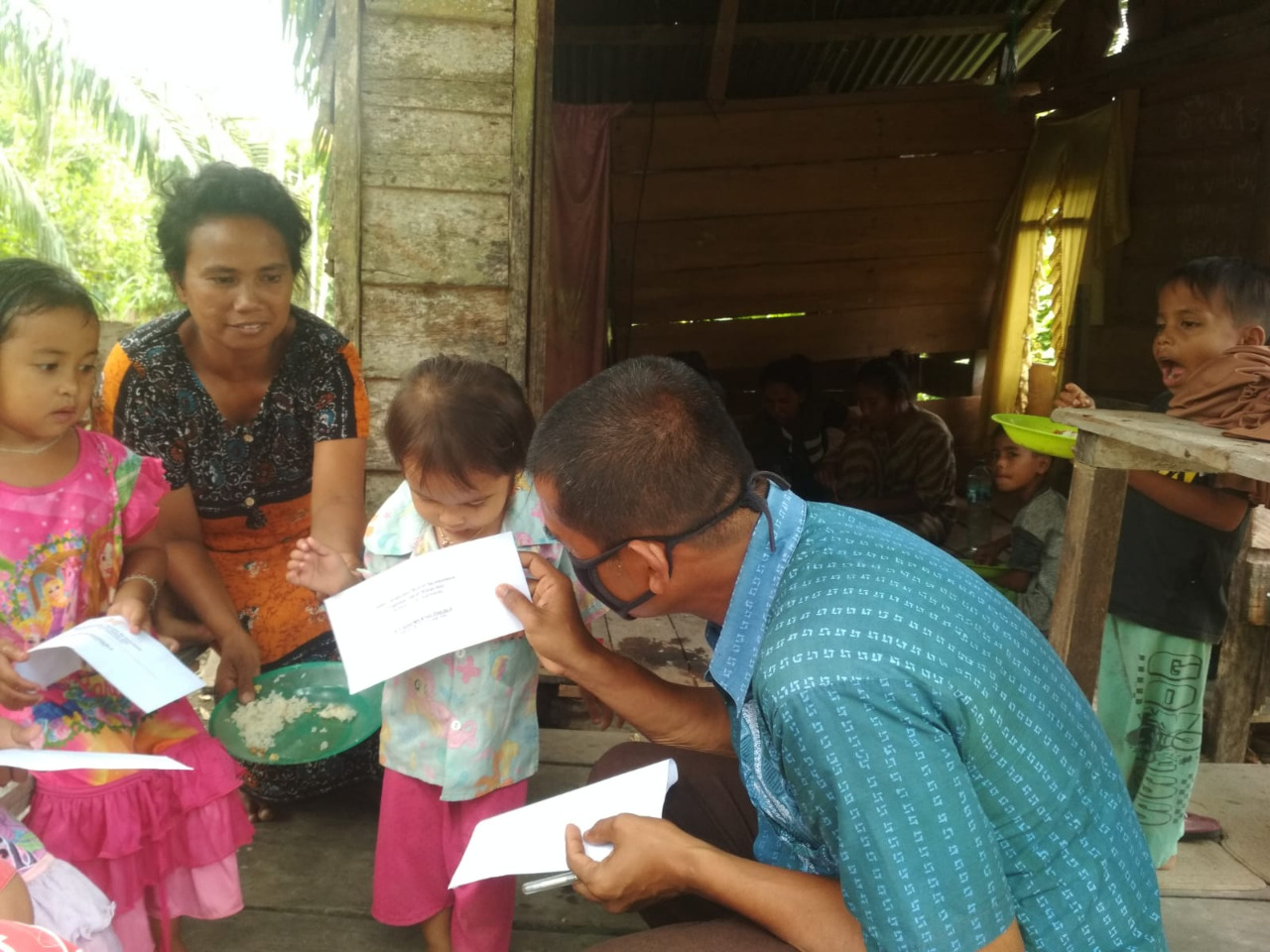 “Tiga anak yatim ini, ayahnya diterkam buaya belum lama ini, mereka masih kecil, namanya, Aulia, Audia, ini kembar, dan adiknya Mutia, ketiganya perempuan,” terang Noprio Sandi.