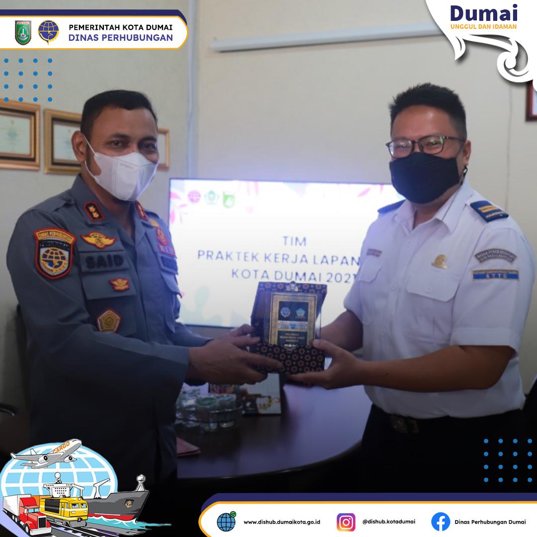 DUMAI (MR) - Rabu (15/12/2021), Plt. Dinas Perhubungan Kota Dumai Said Effendi, SE menerima penjemputan sekaligus penutupan Praktek Kerja Lapangan Taruna/i PTDI-STTD Bekasi dengan Dinas Perhubungan kota Dumai.