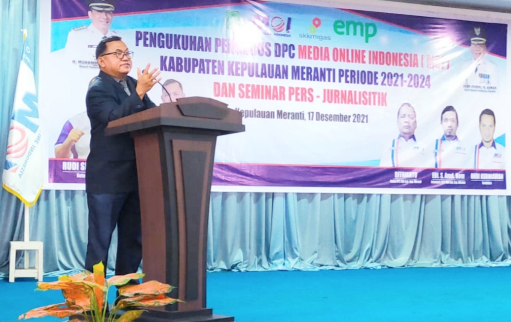 Seminar yang dibuka secara langsung oleh Bupati Kepulauan Meranti, H.Muhammad Adil, S.H., bersempena pengukuhan pengurus DPC Media Online Indonesia (MOI) Kabupaten Kepulauan Meranti oleh Ketua Umum DPP MOI, Rudi Sembiring.