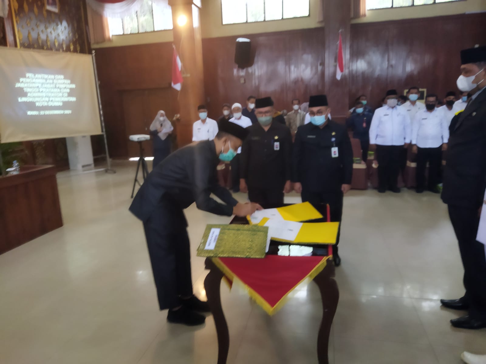 DUMAI (MR) - Pemerintah Kota (Pemko) Dumai melaksanakan Pelantikan dan Pengambilan Sumpah Jabatan Pejabat Pimpinan Tinggi Pratama dan Administrator di Lingkungan Pemerintah Kota Dumai diadakan di Gedung Sri Bunga Tanjung Jalan Putri Tujuh Kota Dumai.