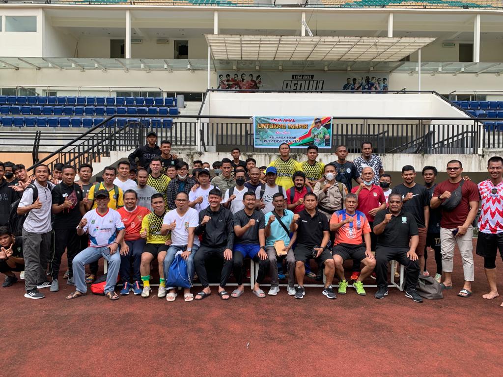 PEKANBARU (MR) - Laga amal untuk Taufik Ramsyah yang di taja Asosiasi Pelatih Sepakbola Seluruh Indonesia (APSSI) Riau di Stadion Utama Riau di Kota Pekanbaru, Sabtu (1/1/2022) pagi berhasil mengumpulkan dana sebesar Rp 25 Juta lebih.