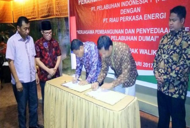 Dimana sebelumnya, Wali Kota Dumai, Drs H Zulkifli As telah menandatangani nota kesepahaman dengan Direktur PT Pertamina Patra Niaga (PPN), Gandhi Sriwidodo dalam hal membangun terminal aspal curah (TAC) di Kawasan Pengembangan Pelabuhan Terpadu (KP2T) Dock Yard Dumai. Hal senada pun dilakukan GM PT Pelindo I Cabang Dumai, Djuhaeri dan Komisaris PT Riau Perkasa Energi (RPE), Atep Nanda Subang dalam rangka menjalin kerjasama pembangunan dan penyediaan energi listrik di pelabuhan Kota Dumai yang disaksikan oleh orang nomor satu Kota Dumai, H Zulkifli As bersama Wakil Ketua II DPRD Dumai, H Zainal Abidin di ruang Anggrek, Hotel Grand Zuri Dumai. Senin (16/1/2017) malam. Hal ini dilaksanakan sebagai bentuk untuk meminimalisir seringnya pemadaman listrik yang terjadi di Kota Dumai.