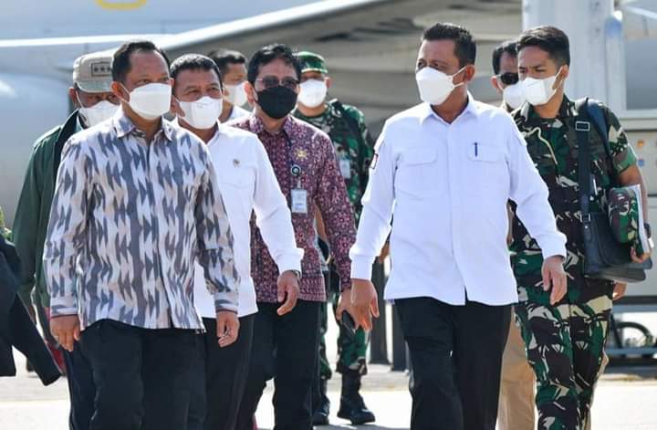 BATAM (MR) - Gubernur Kepulauan Riau H. Ansar Ahmad SEM menyambut kedatangan Menteri Dalam Negeri (Mendagri) Tito karnavian dan Wakil Menteri Pertahanan (Wamenhan) RI M. Herindra di VIP Bandara Hang Nadim, Kota Batam, Kepulauan Riau, Kamis (13/01/2022).