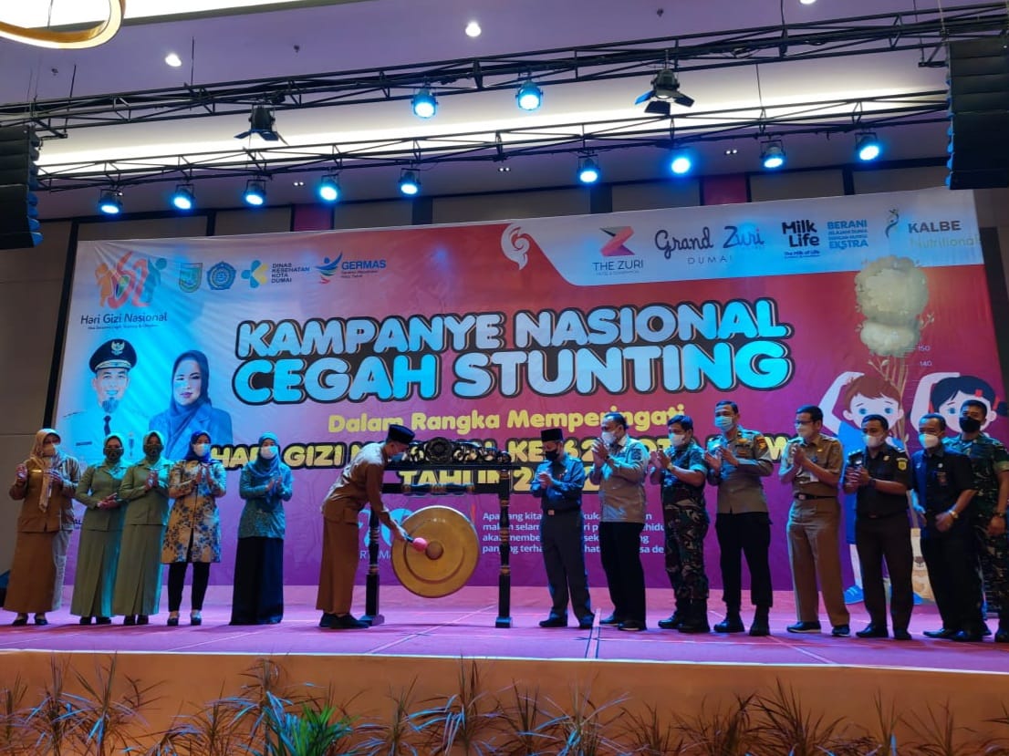DUMAI (MR) - Kegiatan Hari Gizi Nasional (HGN) ke-62 Tahun 2022 dibuka secara resmi oleh Walikota Dumai, dengan mengajak masyarakat untuk bersama cegah Stunting dan Obesitas bertempat di Ballroom Hotel The Zuri Dumai.