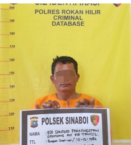 Penangkapan pelaku dilakukan Kapolsek Sinaboi AKP EVI HERMANTO, SH dan Kanit Reskrim Polsek Sinaboi Aipda JOAN KURNIAWAN bersama Kepala Tim Buser Bripka Lestari Candra beserta anggota di back Up oleh Satuan Reserse Kriminal Polres Rokan Hilir dipimpin Kasat Reskrim Polres Rohil AKP. ERU ALSEPA, SIK.MH dan Ketua Tim Buser IPTU IRSAN HARAHAP, SH.