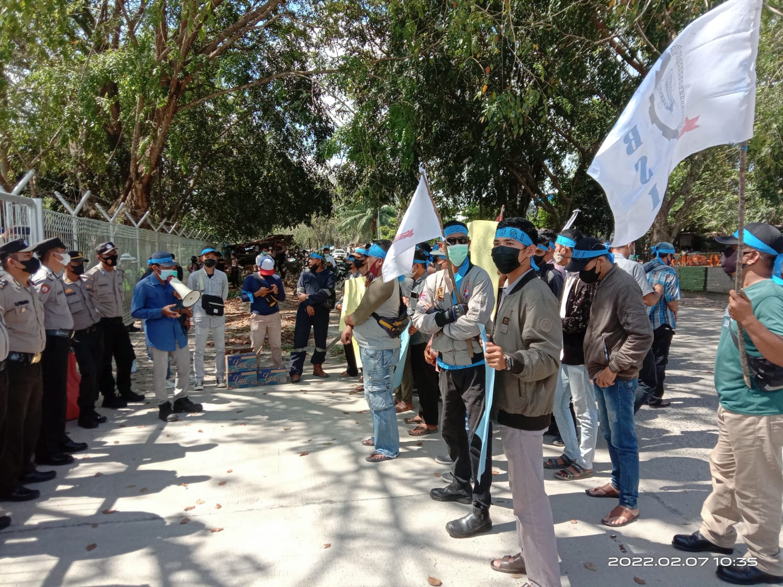 DUMAI (MR) - Aksi Penyampaian Pendapat di Muka Umum di depan kantor PT. Pertamina Patra Niaga (PPN) dilakukan oleh DPC Serikat Buruh Sejahtera Indonesia (SBSI) Kota Dumai dengan Estimasi massa sekitar lebih kurang 60 orang. Senin, (07/02/2022).