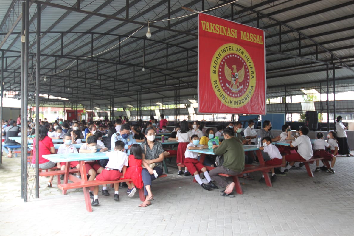 RIAU (MR) – Badan Intelijen Negara Daerah (Binda) Riau gelar vaksinasi massal untuk anak usia 6-11 tahun, Vaksinasi Booster digelar di Sekolah Metta Maitreya dengan sasaran sebanyak 1.000 dosis, sementara Vaksinasi Anak berlangsung di SD Kalam Kudus untuk 402 siswa dan siswi. Senin (14/2/2022).