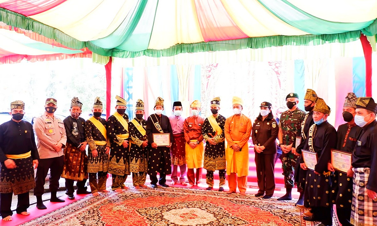 Ketua LAM Rohil Surya Arfan beserta rombongan, Ketua Kekerabatan adat melayu Rohil Nasrudin Hasan, Tokoh agama , tokoh masyarakat dan tokoh Adat seperti Para ketua suku/adat yang ada di Kabupaten Rokan Hlir. (rls/Wisman)