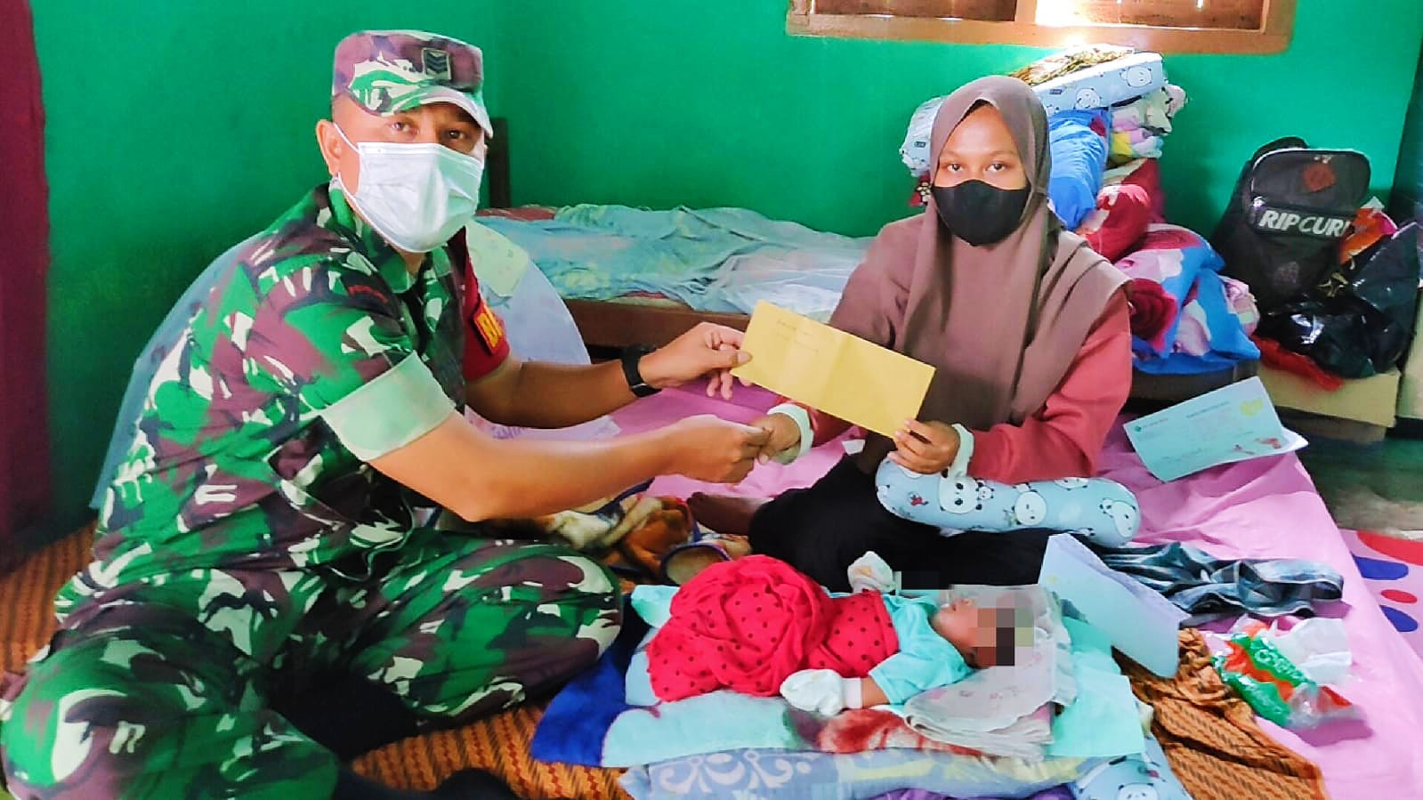 “Baru saja saya menjenguk dan memberikan bantuan kepada orang tua bayi yang lahir tanpa tempurung kepala bersama pak kadus,” jelas Serka Arnizam, pada Rabu (16/2/2022).