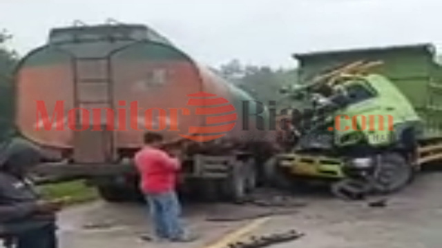 PINGGIR (MR) – Kecelakaan Lalu Lintas (Lakalantas) di Jalan Lintas Duri-Pekanbaru tepatnya di Desa Muara Basung, Kecamatan Pinggir tepatnya di KM 111 kembali terjadi kali ini melibatkan dua unit Mobil Truck Tanki CPO adu kambing dan satu pengemudi tewas saat sudah berada di Rumah Sakit.