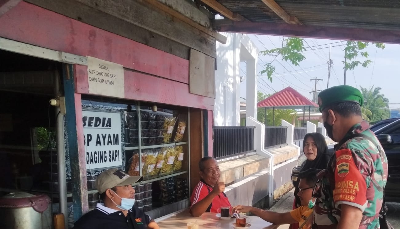 DUMAI (MR) - Babinsa Koramil-01-Kodim 0320/Dumai Kelurahan Buluh Kasap Kecamatan Dumai Timur Peltu Wawan, melaksanakan sosialisasi Protokol Kesehatan, (24/3).
