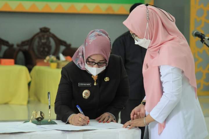 LABUHANBATU (MR) - Bupati Labuhanbatu dr.H.Erik Adtrada Ritonga,M.KM melalui Wakil Bupati Hj.Ellya Rosa Siregar,S.Pd.MM melantik sebanyak 37 Pejabat baru di lingkungan Pemkab Labuhanbatu, Rabu (30/03/2022) di Ruang Data dan Karya, Kecamatan Rantau Selatan.