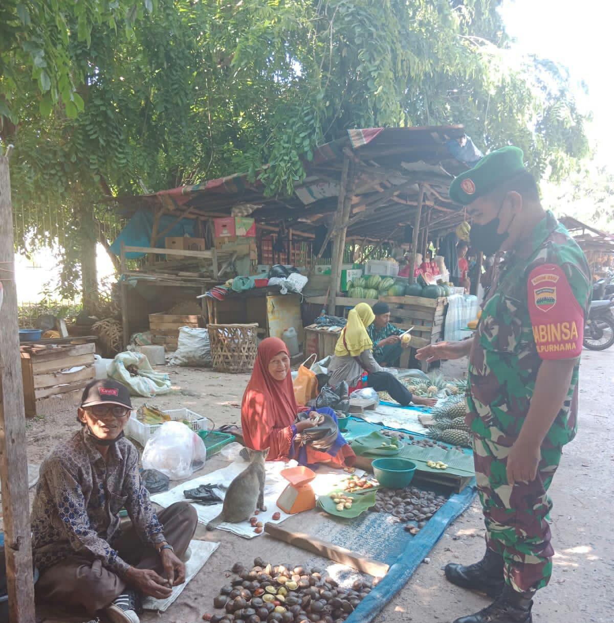 Sertu Mahyudin melakukan sosialisasi pencegahan Covid-19 di pasar pagi yang terletak di Jalan Budi Kemuliaan dan mengajak masyarakat untuk taat Menjalankan program 3 M sebagai bentuk pencegahan Virus Covid-19.