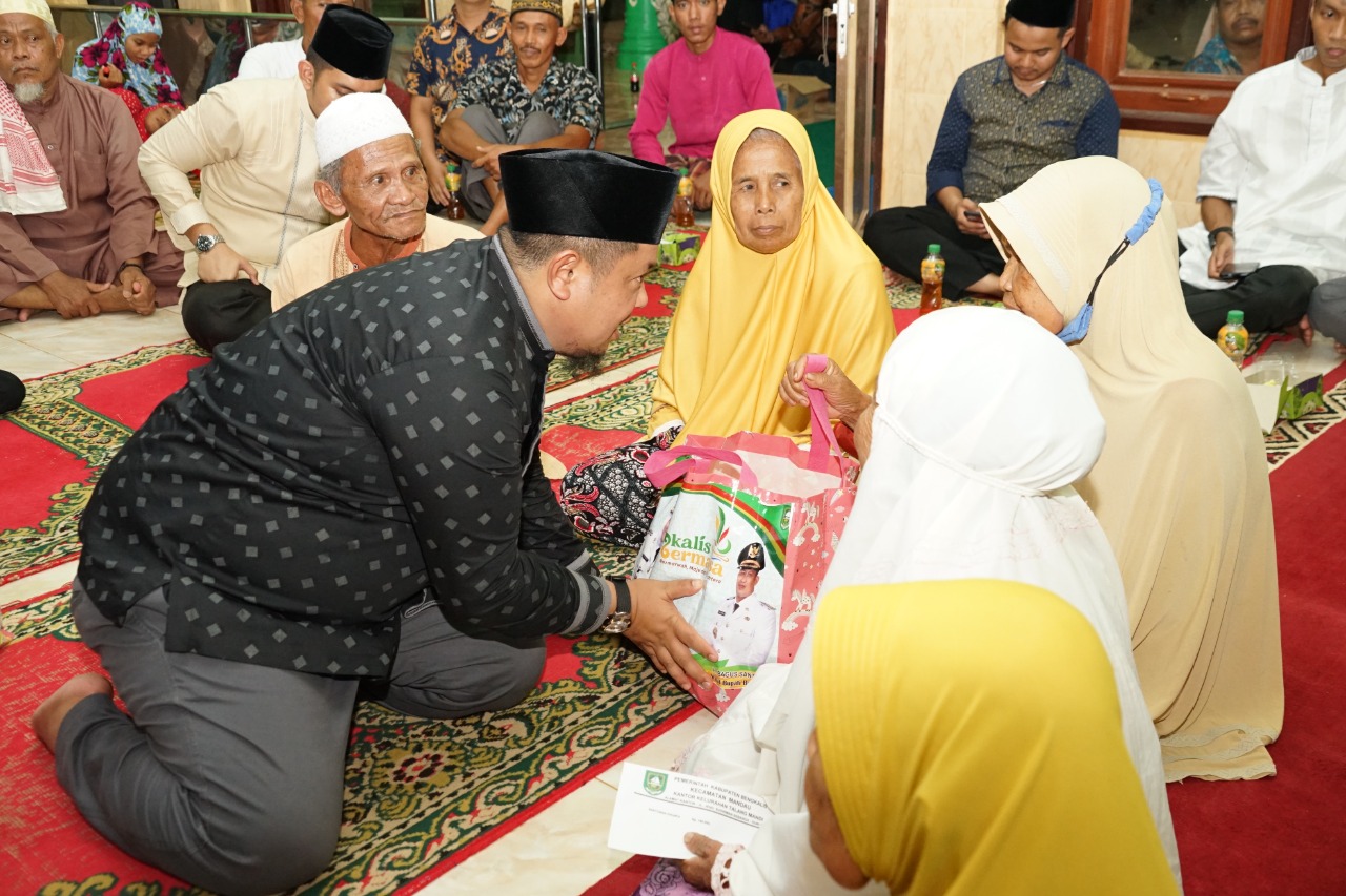Setelah memberikan sambutan, Camat Mandau Riki Rihardi menyerahkan santunan dan sembako kepada kaum dhuafa dan anak yatim di Kelurahan Talang Mandi, dan juga menyerahkan cendera mata berupa jam dinding dan payung yang diberikan oleh Bupati Bengkalis Kasmarni kepada Pengurus Masjid Babul Mu'arif.(HANDANA)