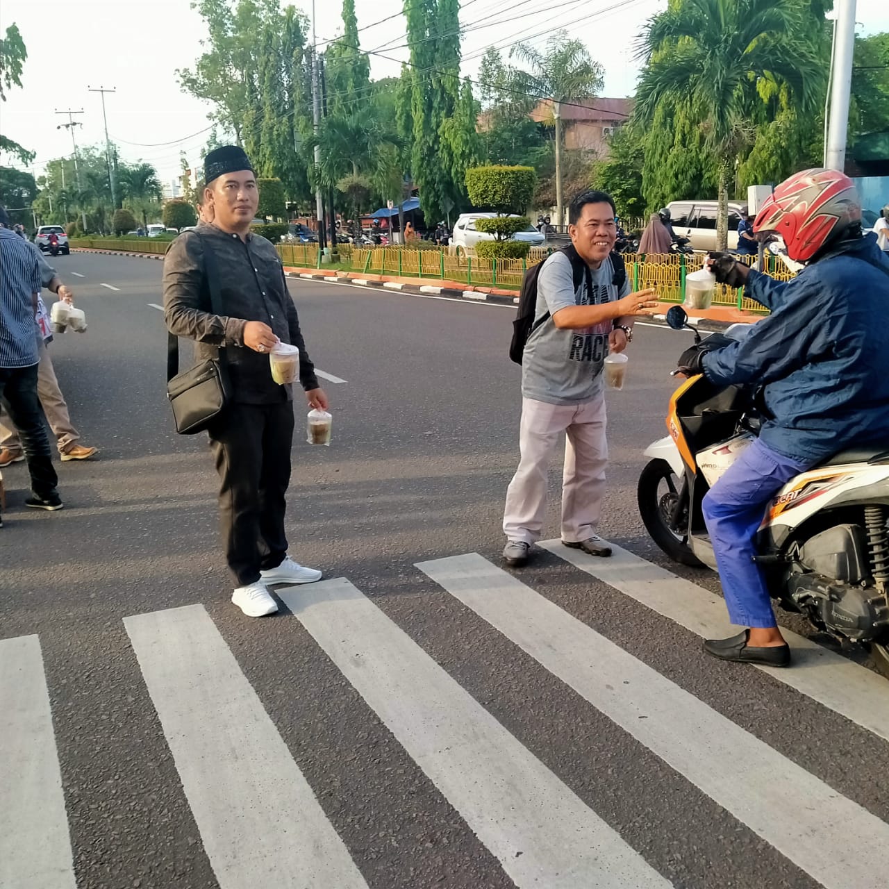 Ratusan bungkus takjil dibagikan kepada pengendara yang lewat di Jalan Ahmad Yani Kota Tanjungpinang.