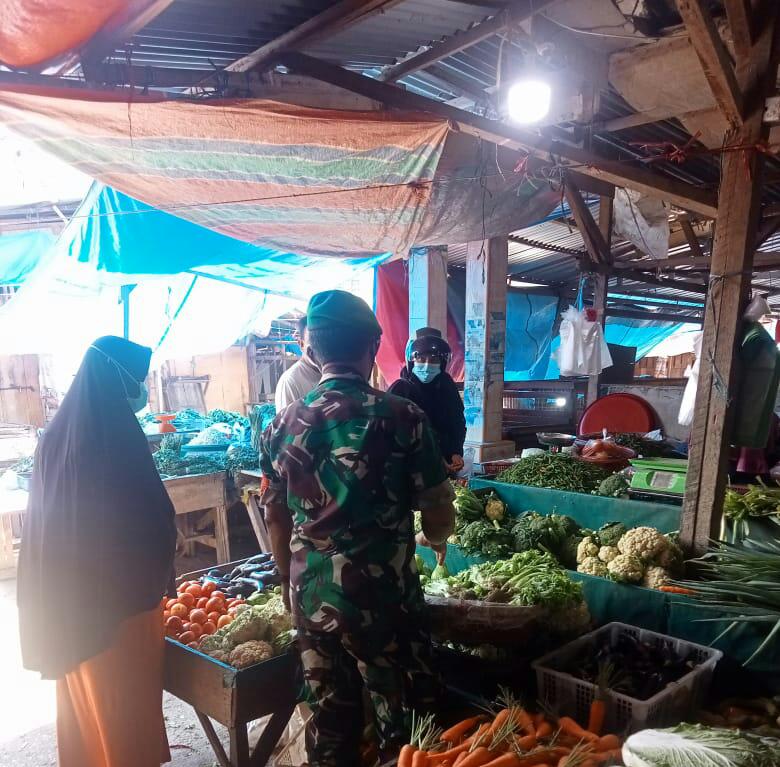 DUMAI (MR) - Sebagai Bentuk Rasa peduli terhadap sesama, Kodim 0320/Dumai melalui Babinsa Koramil-01 Kelurahan Bagan Keladi Sertu Heriyanto, (23/4), Turun ke pasar Tradisional.