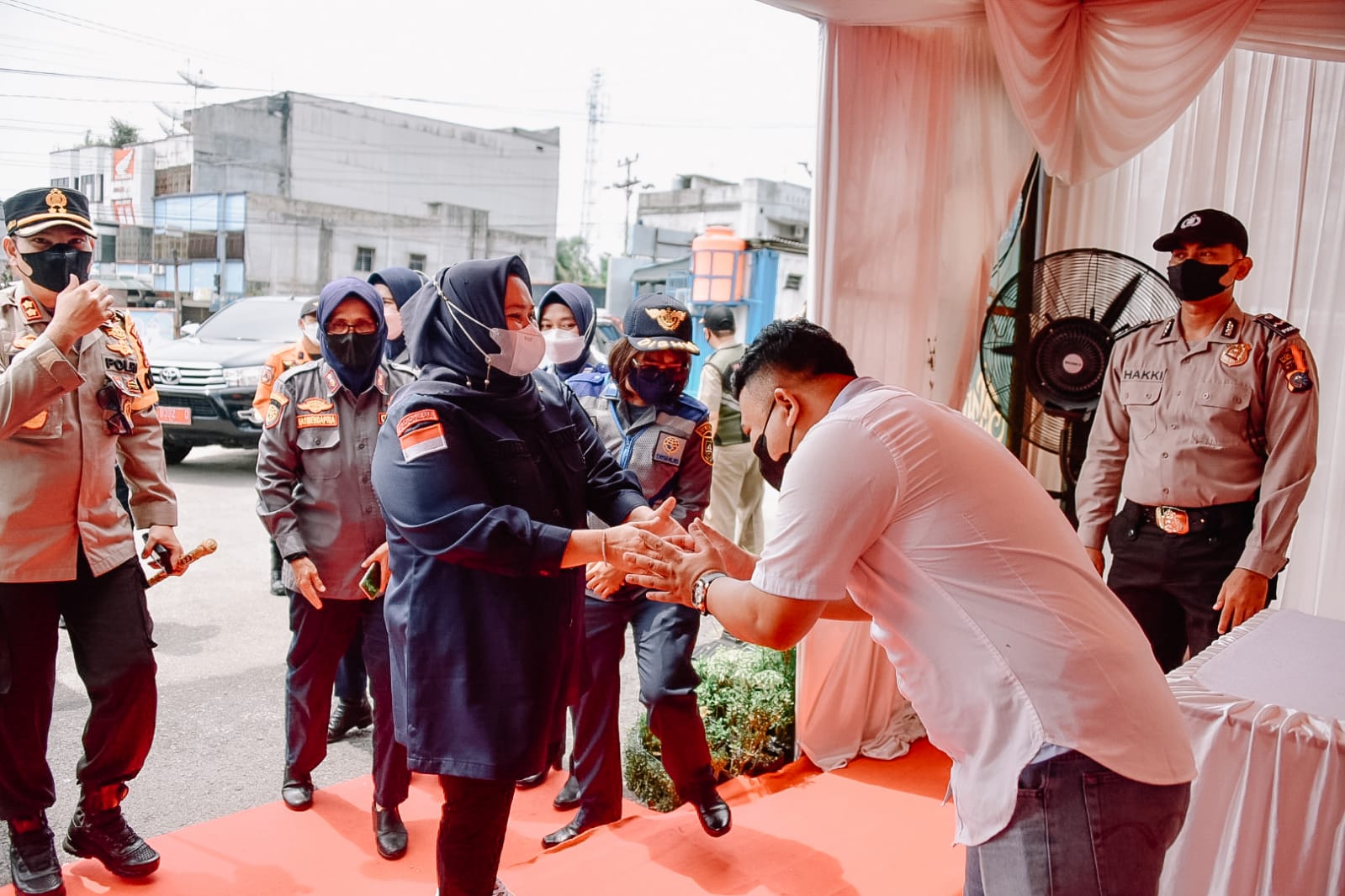 Titik awal yang dikunjungi oleh Kanjeng Mas Tumenggung Kasmarni Purbaningtyas itu yakni pos di simpang pintu Tol Pinggir, Kelurahan Balai Raja, lalu pos di Simpang Pokok Jengkol, Kelurahan Batang Serosa, dan terakhir di Simpang Bangko, Desa Kesumbo Ampai.