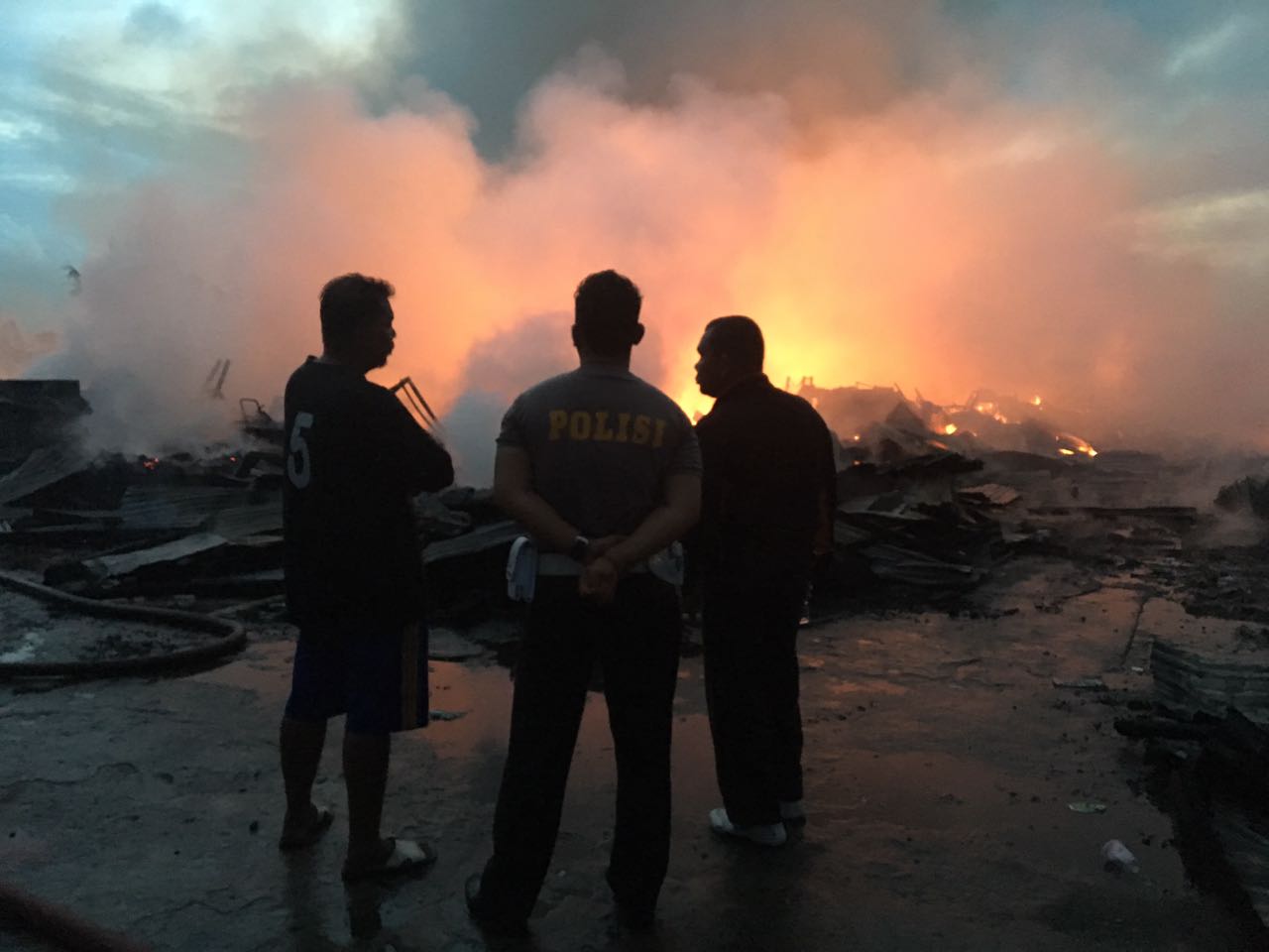 Karena melihat api tersebut, para penjaga ini langsung berteriak minta tolong dan kemudian secara bersama-sama masyarakat dan Security PT. PSG berusaha untuk memadamkan api.
