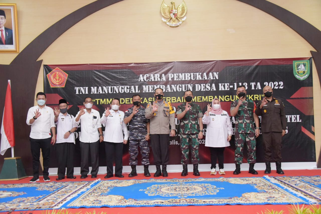 PINGGIR (MR) – Bupati Bengkalis Kasmarni membuka kegiatan TNI Manunggal Membangun Desa (TMMD) ke-113 tahun 2022, Kodim 0303 Bengkalis di Desa Muara Basung dan Desa Semunai Kecamatan Pinggir Rabu, 11 Mei 2022.