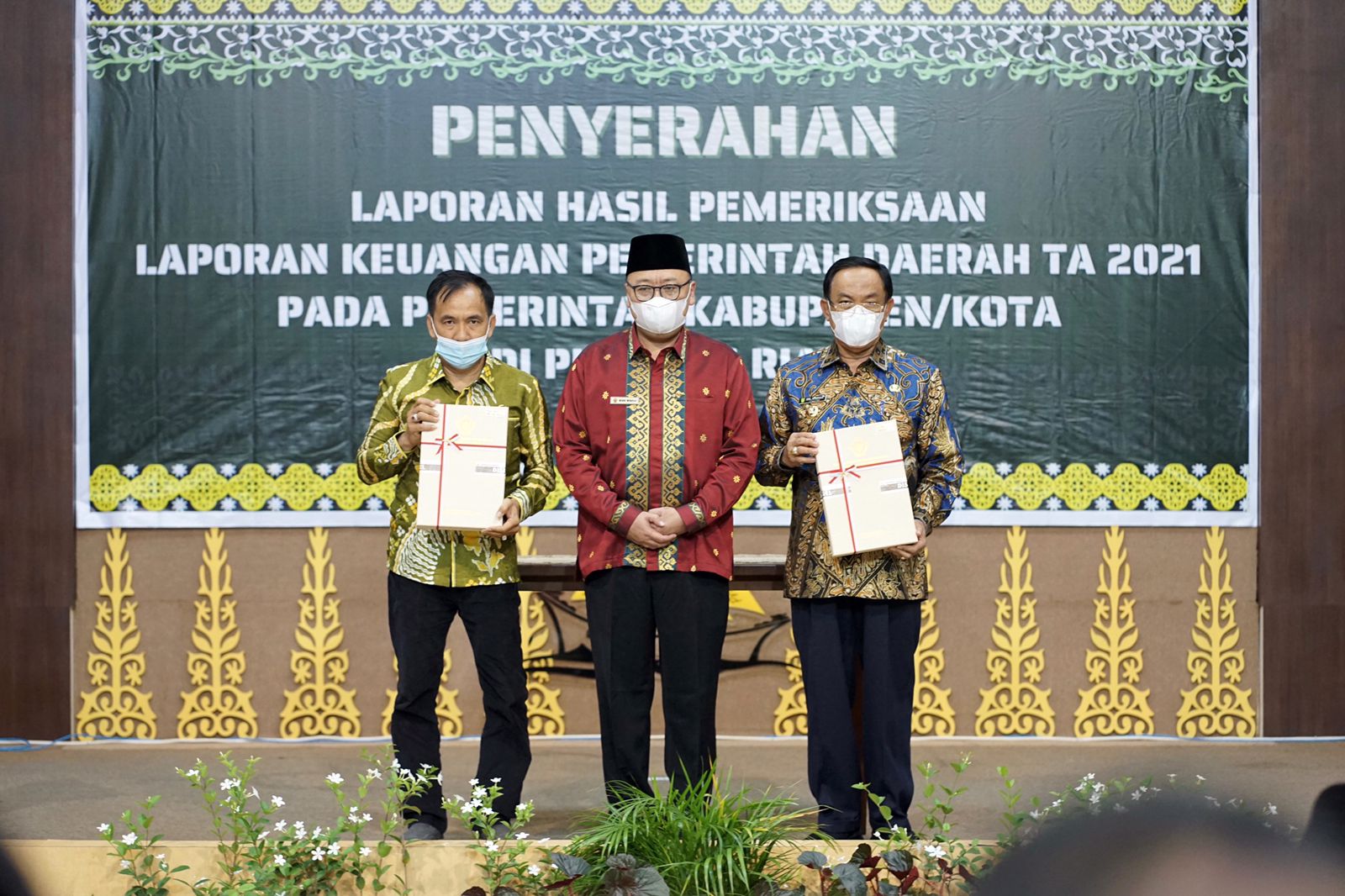 TEMBILAHAN (MR) - Pemerintah Daerah Kabupaten Indragiri Hilir kembali meraih opini Wajar Tanpa Pengecualian (WTP) penyampaian Laporan Hasil Pemeriksaan (LHP) atas Laporan Keuangan Pemerintah Daerah (LKPD) Kabupaten Inhil untuk Tahun Anggaran 2021 dari Badan Pemeriksa Keuangan (BPK) RI Perwakilan Provinsi Riau, selasa 17/05/2022.