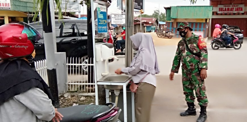 Selain itu juga, Babinsa Kel.Dumai Kota Serka Suandi selalu mengingatkan Warga agar selalu menggunakan Masker bila keluar rumah dan rajin cuci tangan dengan sabun.