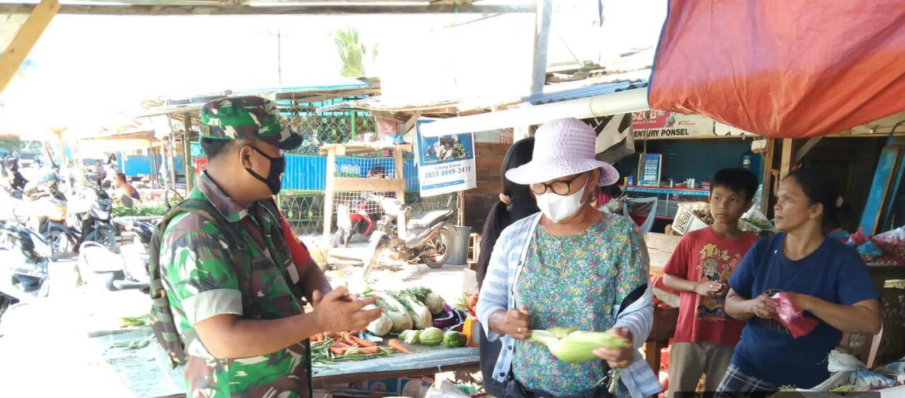 Cegah Covid-19, Serda Harmaini Datangi Pasar Bundaran