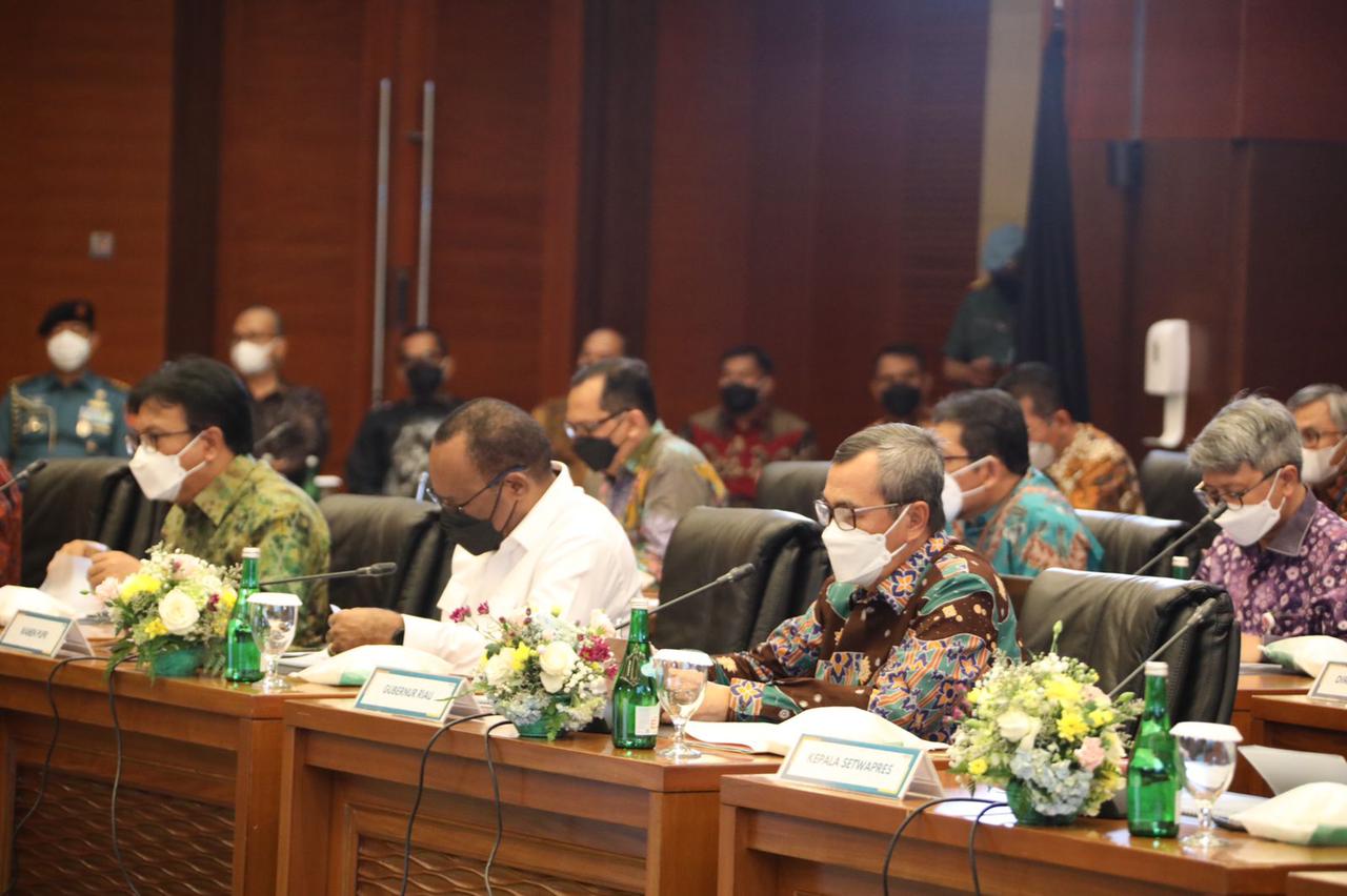 Dalam rapat itu, Gubernur Riau (Gubri) H Syamsuar berkesempatan menyampaikan beberapa poin penting bagi pengembangan ekonomi syariah di Provinsi Riau.