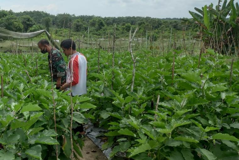 Kodim 0320/Dumai melalui Koramil 02/Bukit Kapur Pelda Sembiring Babinsa Kelurahan Bagan Besar (31/5) melaksanakan pendampingan kepada petani Terong yaitu melakukan pendampingan perawatan guna mendukung Program Swasembada Pangan di tengah Masih Pandemi Covid-19 di Kelurahan Bagan Besar Kecamatan Bukit Kapur Kota Dumai.