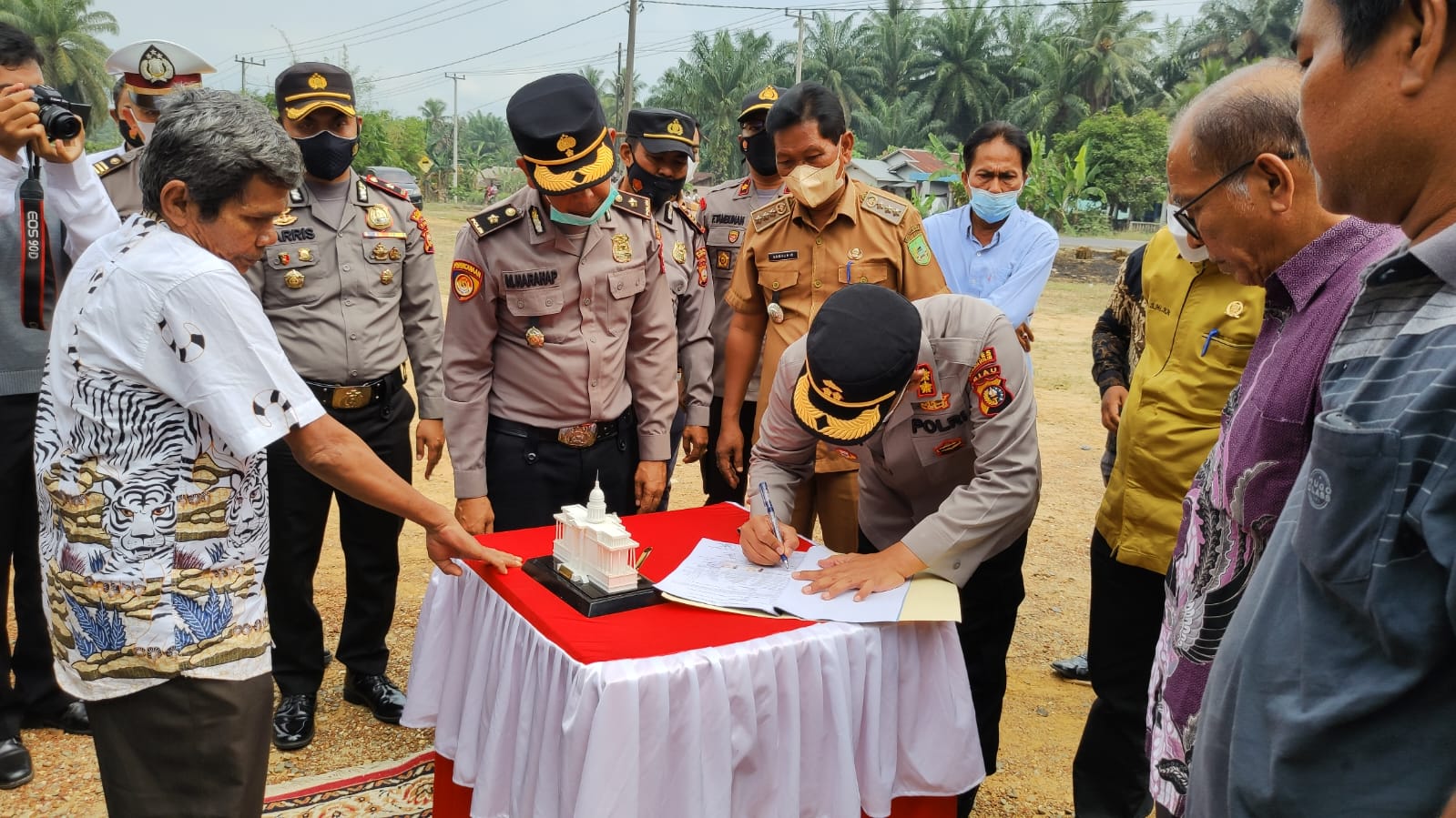 ROHIL (MR) - Masyarakat Balai Jaya Kecamatan Balai Jaya Kabupaten Rokan Hilir menghibahkan sebidang tanah seluas 64 M x 100 meter persegi kepada Polres Rokan Hilir untuk pembangunan gedung baru Polsek Balai Jaya dalam mendukung kinerja aparat kepolisian, Selasa (7/6/2022).